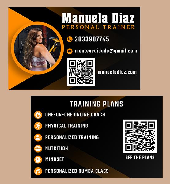 Diseño de Tarjeta de presentación para marca personal Manuela Diaz Personal Trainer | U.S.A